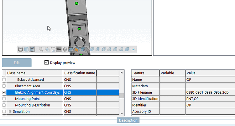 This is achieved by placing a connection point in the 3db (which acts as the origin point of the new coordinate system), which is then classified according to Elektro Alignment Coordsys.
