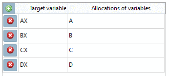 The dialog area Target variable / Variable assignment is used if there are variable changes (possibly with value changes in addition). Partly there is an automatic detection.