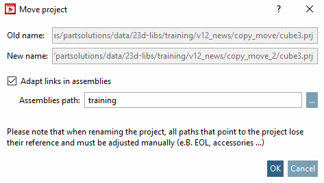 If the projects are not part of an assembly, disable the option Adapt links in assemblies (if set) and confirm with .