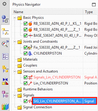 On the left, in the Physics Navigator, click on the item under Signals or Couplers (here in the example "Signals"), which you want to add to the time scale: