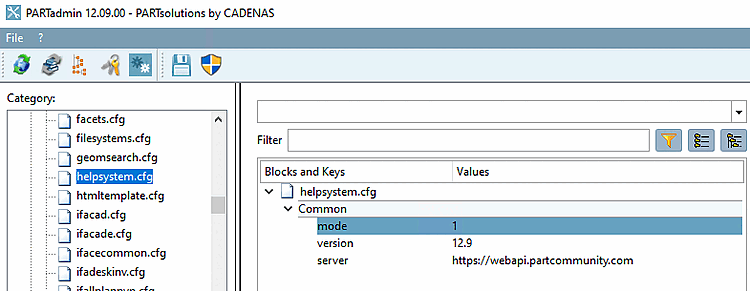 Go to the AppServer (or in the case of a single-user installation on the stand-alone workstation) and open PARTadmin in Category "Configuration Files [Configuration files]" under $CADENAS_SETUP Configuration file
