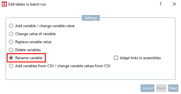 -> The dialog box Edit tables in batch run is opened.