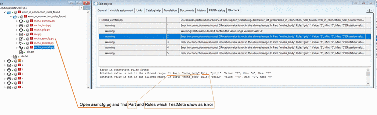Solution: Check the connection rules of the configuration file (asmcfg) in the dialog box Rule properties.