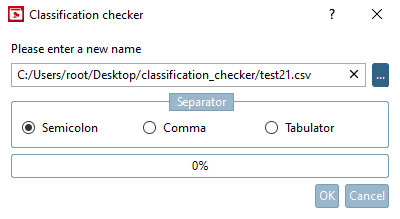 In the dialog Classification check, enter storage path and name for the output file and determine the delimiter.