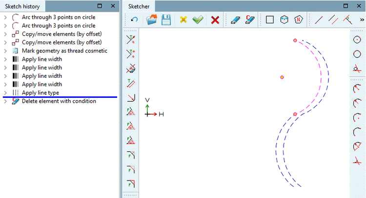 'HUB2D=0' is according to the default setting. In this case it shall be deleted. Only if the value of variable 'HUB2D' is unequal to '0', the sketch shall not be deleted, meaning the cosmetic drawing shall be visible.