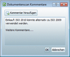-> The Document scan comments dialog box opens. Insert your comment and confirm with .
