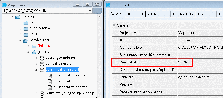 installed training catalog, an example can be found under $CADENAS/Training/PARTdesigner/Threads/cylindrical_thread.prj.