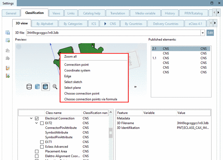Placement information: Especially standard parts such as bolts, nuts, etc. are equipped with this information, so that they can be placed in the CAD very simple and quick via placement dialog. On this see Section 5.12.10, “ Classify standard parts for placement dialog ”.
