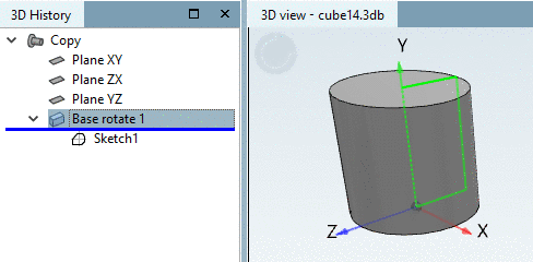 -> The index tree in the 3D History has been expanded with the point Base rotate 1.