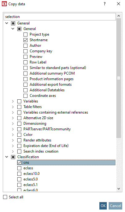 Via context menu command Copy project data, you can specifically copy certain project data form one project to another.