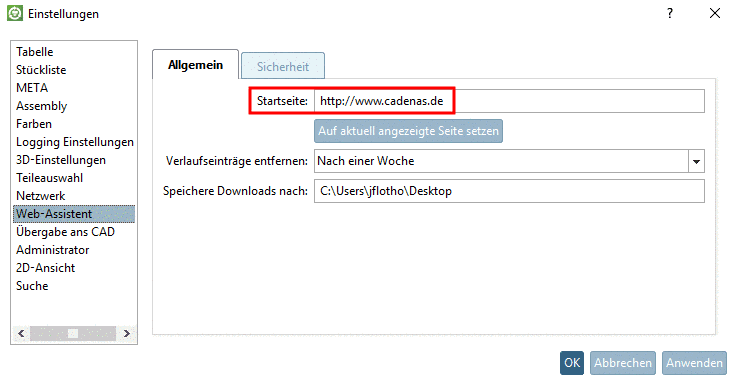 Seamless area in CAD.Here, a respective page is opened in the browser.