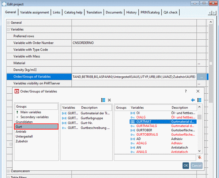 The creation of variable groups is advantageous, because then these can be selected separately. With smaller table and less variables, the user has a better overview when setting the variable values in PARTdataManager or PARTcommunity.