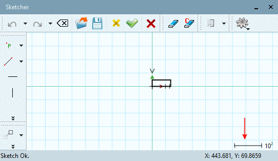 Den Vergrößerungs- / Verkleinerungsmaßstab sehen Sie im Sketcher rechts unten. Positive Exponentialzahlen signalisieren, dass herausgezoomt wurde, negative, dass hereingezommt wurde. Ein Doppelklick mit gehaltener Strg-Taste stellt wieder auf den Normal-Maßstab (10 hoch 0) um.