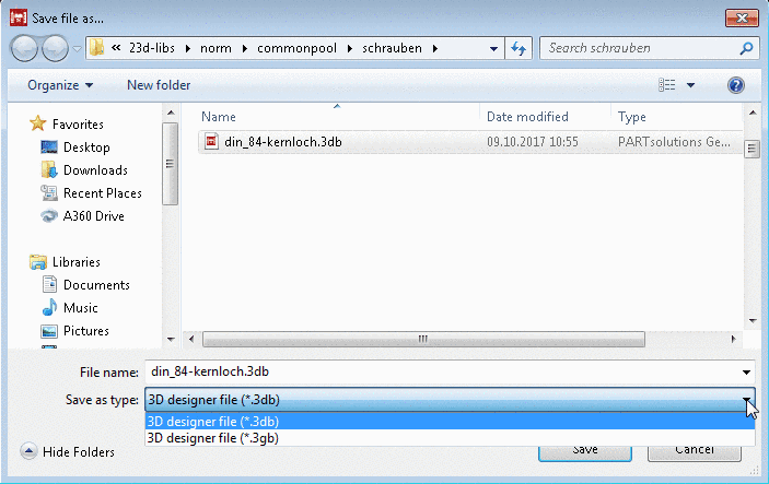 or the menu item File -> Save / Save as... open the dialog box Save file as....