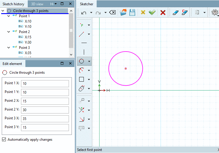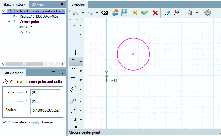 If needed, adjust the values of the points of Center point X, Center point Y and Radius in the docking window Edit element.