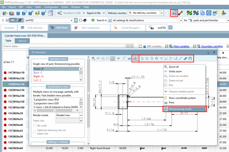 In the following the single tools/functions of Dimensioning mode are explained.