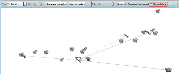 If the results in the Cloud Navigator are zoomed out in order to keep the overview, then to display the part information enlarged is helpful. Move the mouse cursor over the desired part.