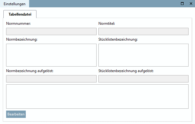 *.tab: When selecting, under Edit project, still empty project details are displayed. Clicking , PARTdesigner is opened, where you can create the characteristic attribute table. See Chapter 7, PARTdesigner .