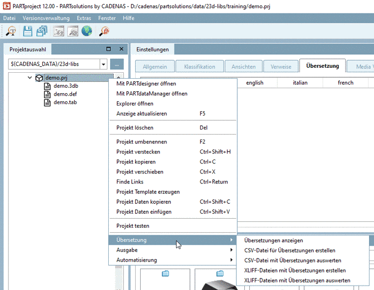 *.def: Translation file, PARTproject is opened on the tabbed page Translation.