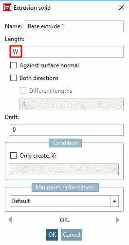 Specify the Length by entering the variable W and confirm by clicking on .
