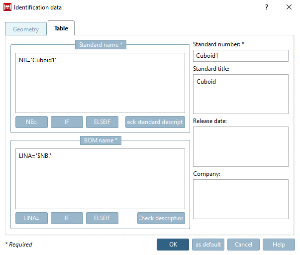 .-> The Identification data dialog box is opened with tabbed page Geometry.