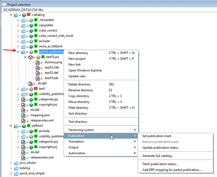 Beside publication of a complete catalog state also partial publication on the level of subdirectories is possible. (Nevertheless, preferred variant is a complete publication of the catalog.)