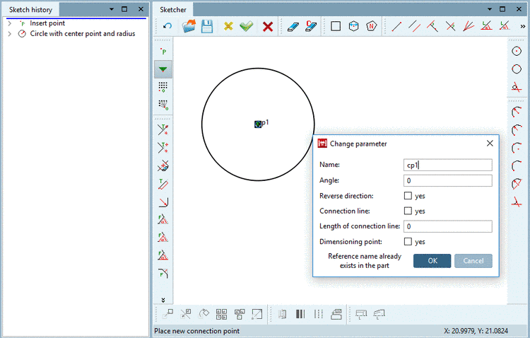 Assign a name to the connection point - for example: cp1 - and confirm with .