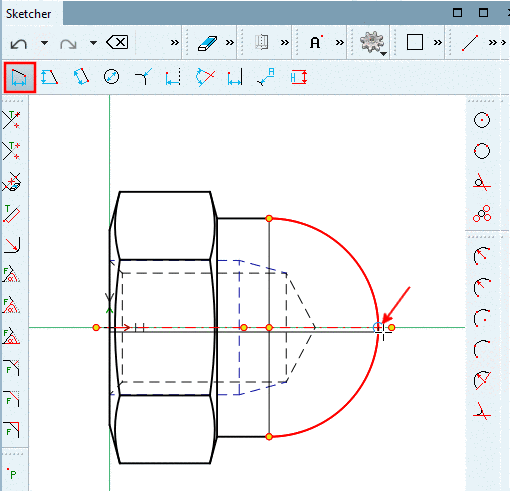 With the help of the tools in the Dimensioning toolbar the *.3db object can be dimensioned in the Sketcher.