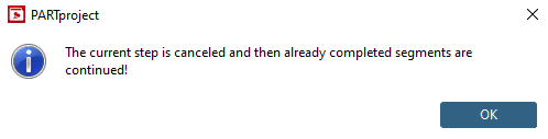 Canceling of Testmeta without regard of its current state. No results are transferred to PARTproject. The old state remains as it is.