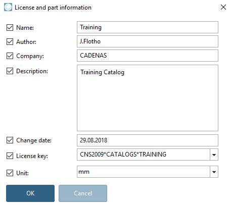 • License file: So that the project files belonging to a catalog cannot later be opened and exported in the PARTdataManager by unauthorized persons, each individual project is linked to a license ( for example, CNS2009*Folder1*READ or CNS2009*Folder1*EXPORT). All licenses that correspond to a catalog are stored in the so-called license file (ending *.cnsldb). This *.cnsldb - you can request one from CADENAS - should then be entered into this field.