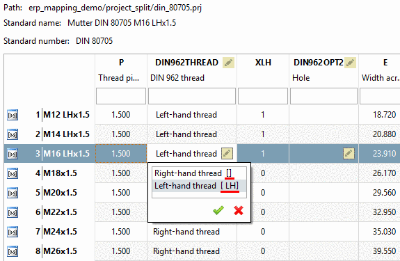 Pay attention to the exact syntax. In this example, there is an empty space before "LH". If you are not quite sure, you can find the exact syntax in the Variable Manager, in the Attribute algorithm of the variable DIN962THREAD. Here, you have Copy & Paste available as well.