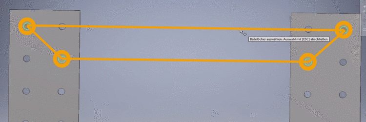 Ignore cylinder lengths:When looking for a fitting counterpart for a hole or a pin, it may be advantageous not to include the length attribute for the search. In such a case use the search template Ignore cylinder lengths.