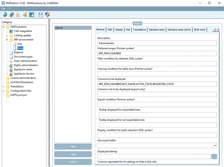 1. Open PARTadmin with category PARTsolutions -> ERP environment -> User.