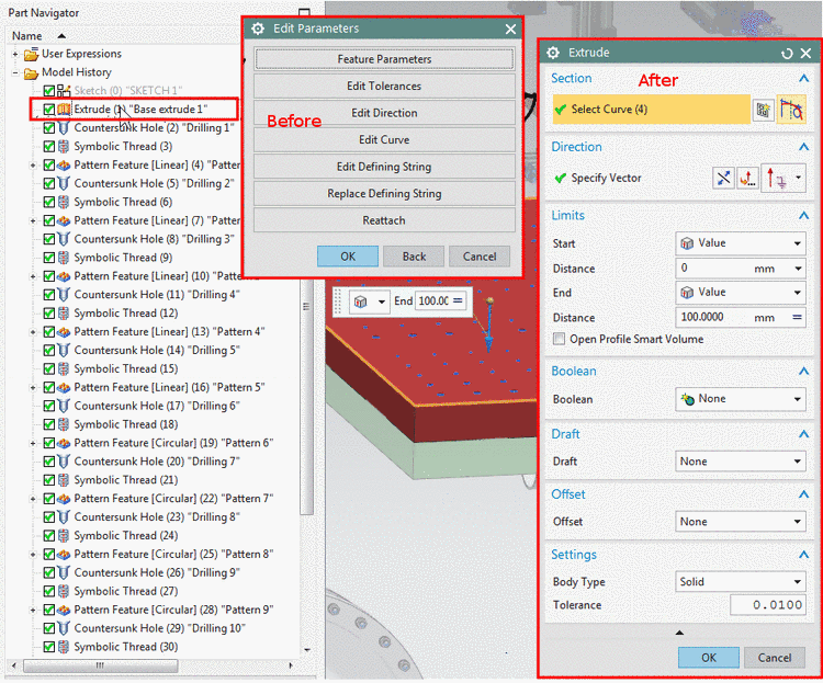 Rotates, extrudes, sweeps etc, will now have icons and dialogs that correspond with the "new" NX UI.