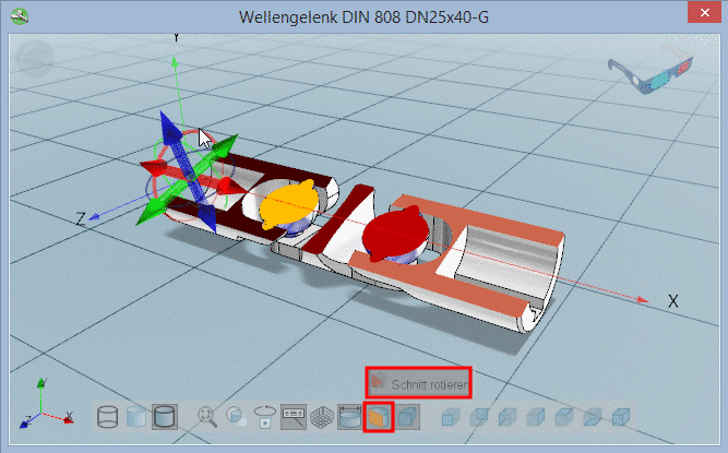 When clicking on the button rotate cut at the navigation cross, additional rotation lines are displayed.