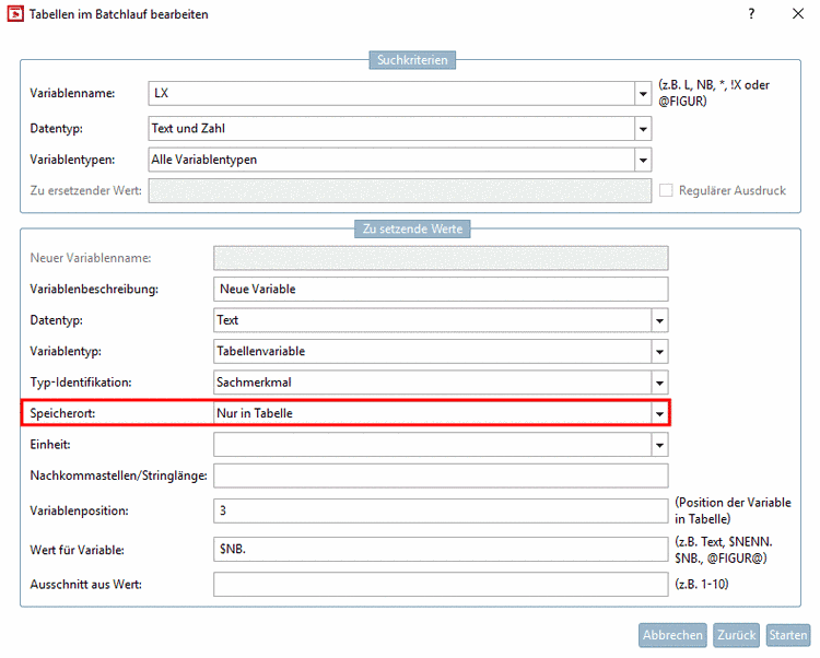 The attribute tables, assigned to the individual parts/projects of a catalog, can be modified via a batch run, which means considerable time-saving.