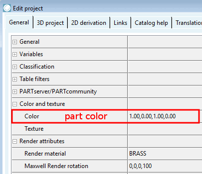part color: ...describes the setting in the matrix under Color and Texture [Color and texture] → Color.