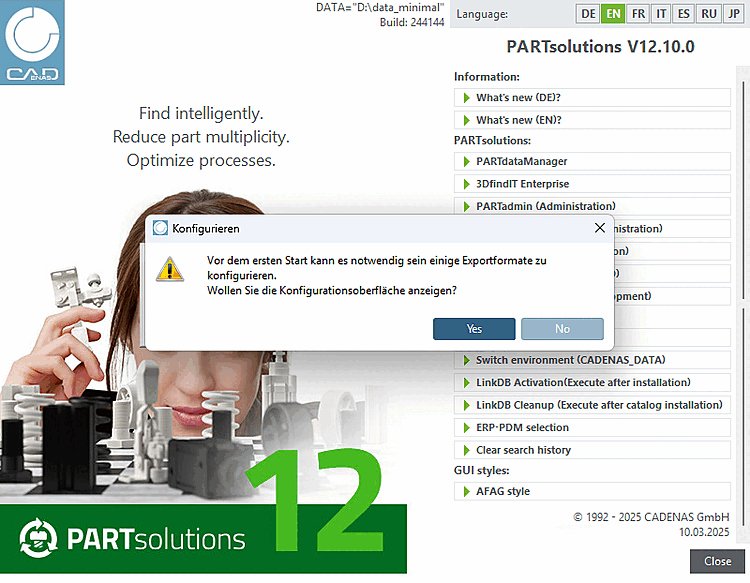 If 3Dfindit is started from an offline CD, a corresponding message appears at the first start. If you answer in the affirmative, PARTadmin is also opened in the Exporter options [Exporter Options] category.