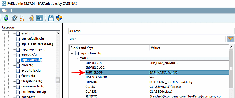 Create a column for the SAP material number in the LinkDB and make it visible for PARTdataManager. For details see Section 4.3, “Add / remove database columns ”.