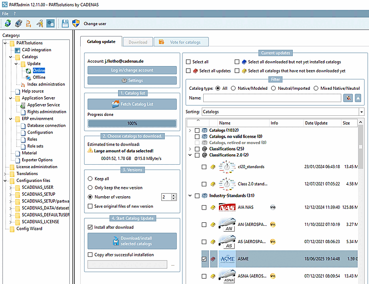 • Catalog installation via PARTadmin > Category PARTsolutions > Catalogs > Update > Online