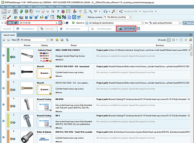 Standards: Standardization system supplied by CADENAS. It is divided into three levels according to the DIN number.