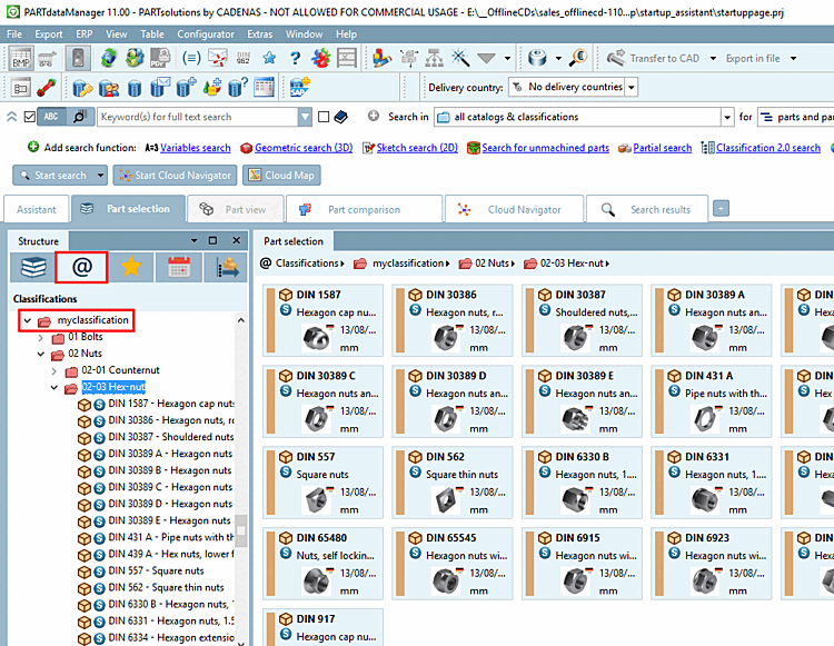 Start PARTdataManager, select the Classes tab and select your classification. The automatically assigned components are displayed.