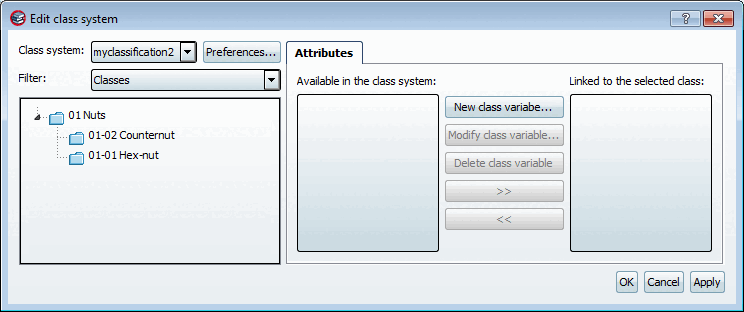 Create your own class system. See Section 5.12.12, “Create or edit your own class system ”. In the example in hand only one class and two subclasses have been created.