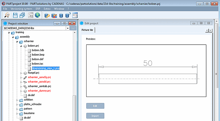 The dimension views displayed in PARTdataManager in the Technical specifications [Technical details] dialog area (e.g. side view [Side view], front view [Front view], etc.) are available in PARTproject as separate *.pra files. Dimensioning views are usually provided by the customer as DWG or DXF files.