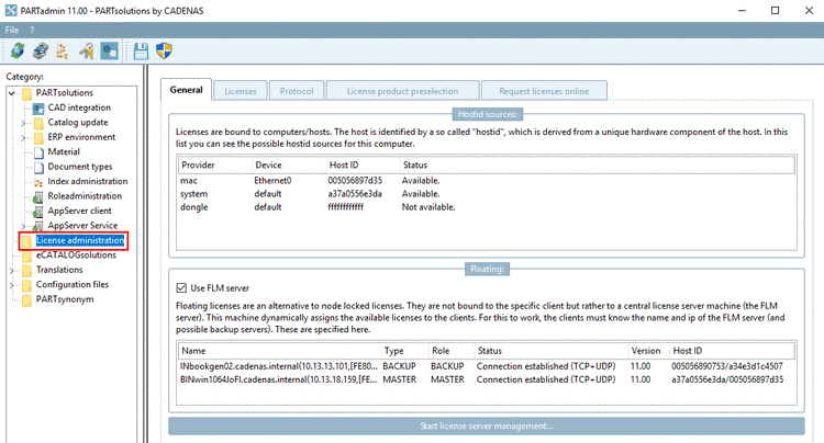 Administration license server (Master/Backup)