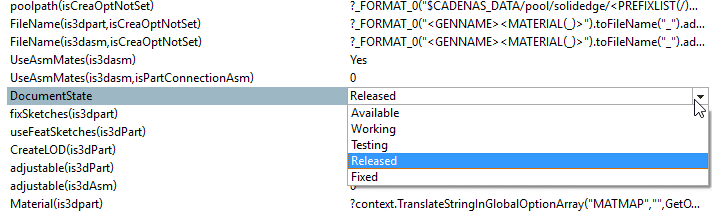 Once an adjustment has been performed for a key value, key and value are displayed in boldface. Furthermore the configuration file is displayed in boldface.