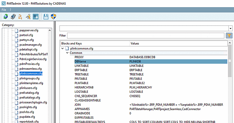PARTlinkManager -> Extras menu -> Configure ERP environment -> Database tab -> Database -> Name