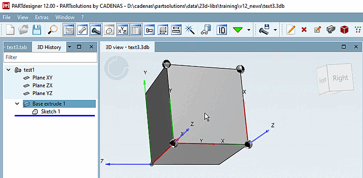Near the desired zero point ("sphere"), select the desired text orientation (red X axis). The blue arrow then points in the positive direction of extrusion.