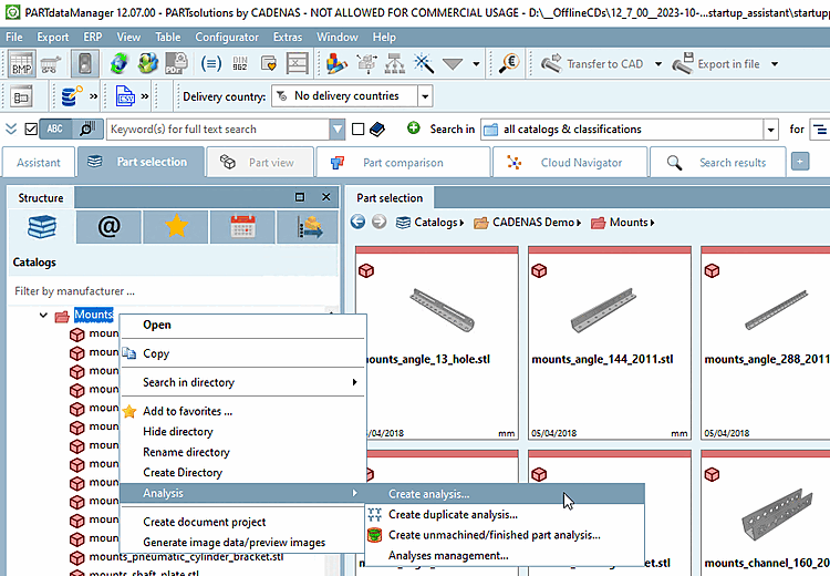 In this example, the standard catalog is to be searched for possible purchased parts.