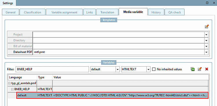 The following explains how to create media variables in PARTproject . Alternatively, these can also be created via PARTtemplateDesigner (see Chapter 8, PARTtemplateDesigner - Create data sheets ).